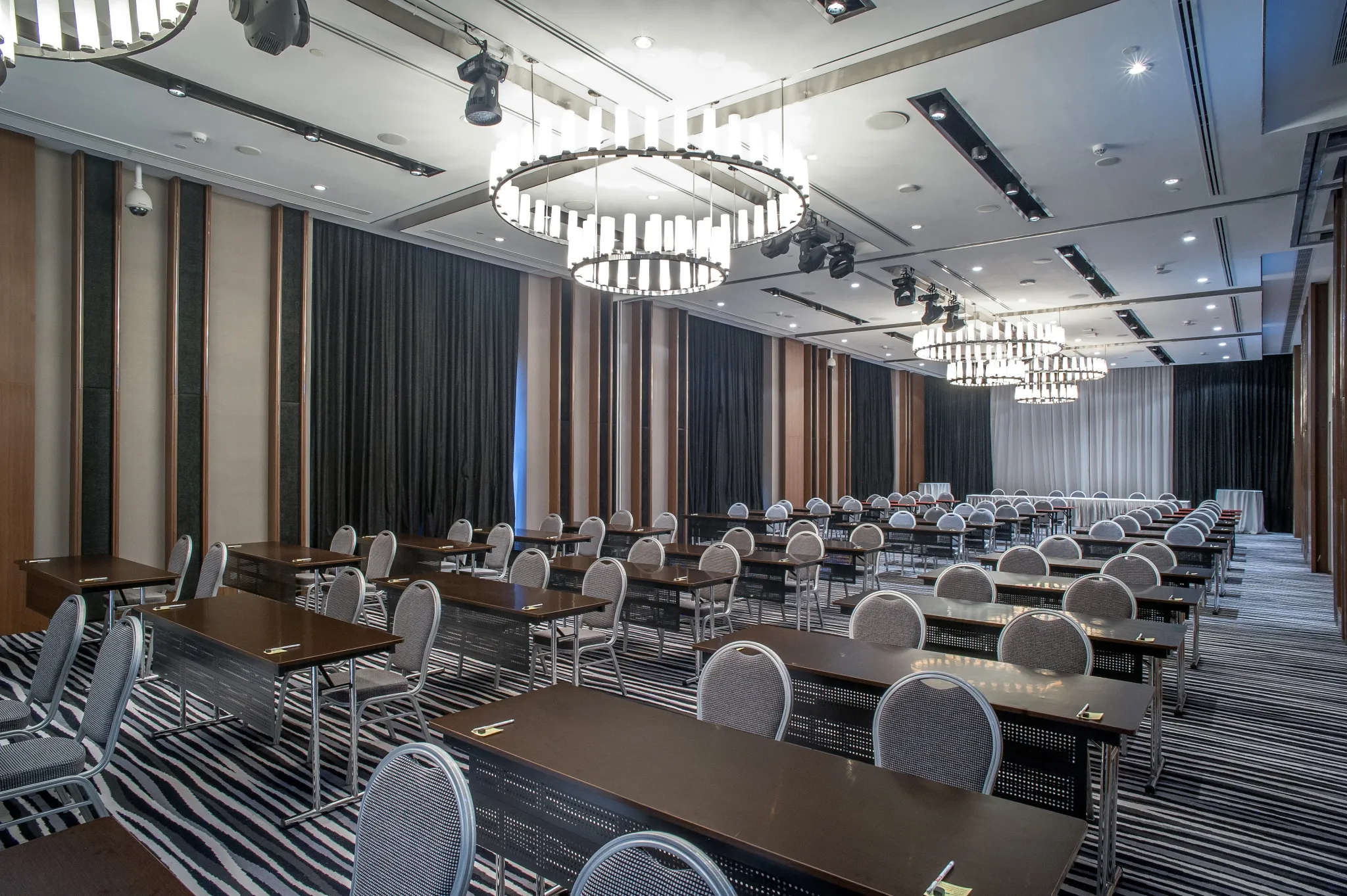 ห้องบอลรูมที่กว้างขวางของเราไม่มีเสา มีเพดานสูง 4.6 เมตร และสร้างด้วยผนังกระจกใสเพื่อให้แสงธรรมชาติส่องเข้ามาได้อย่างเต็มที่ พร้อมด้วยอุปกรณ์โสตทัศนูปกรณ์ที่ทันสมัย สามารถจัดเรียงได้หลายรูปแบบ และมีบริการสนับสนุนด้านธุรกิจและเลขานุการจากศูนย์ธุรกิจของเราที่ชั้น 8 ทำให้ที่นี่เป็นสถานที่ที่สมบูรณ์แบบสำหรับการประชุมขนาดใหญ่ สัมมนา นิทรรศการ หรืองานเลี้ยงรับรอง
